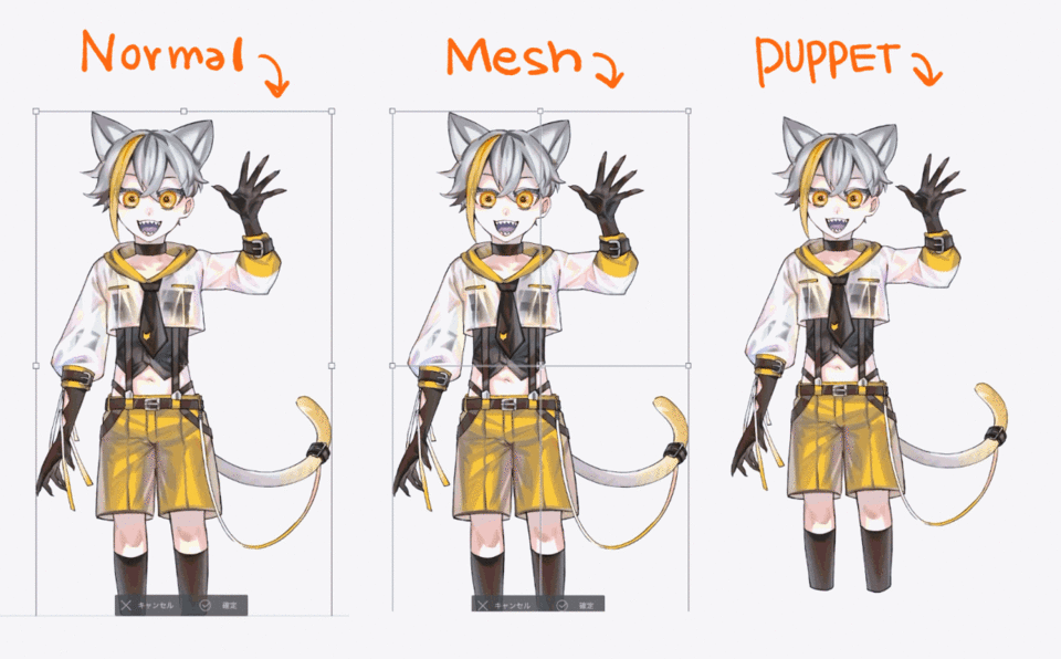 🔹Die Marionettenverformung erzeugt einen Verformungsbereich „Gitter“, der sich an den Bereich des gezeichneten Bildes anpasst und ermöglicht es, den Anpassungsbereich detaillierter als bei bestehenden Methoden zu unterteilen und zu verformen.
