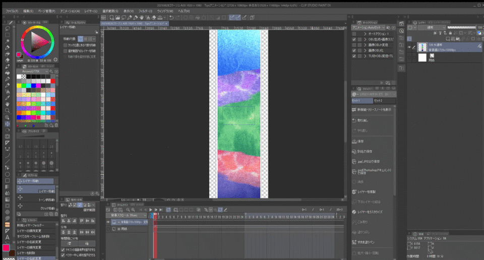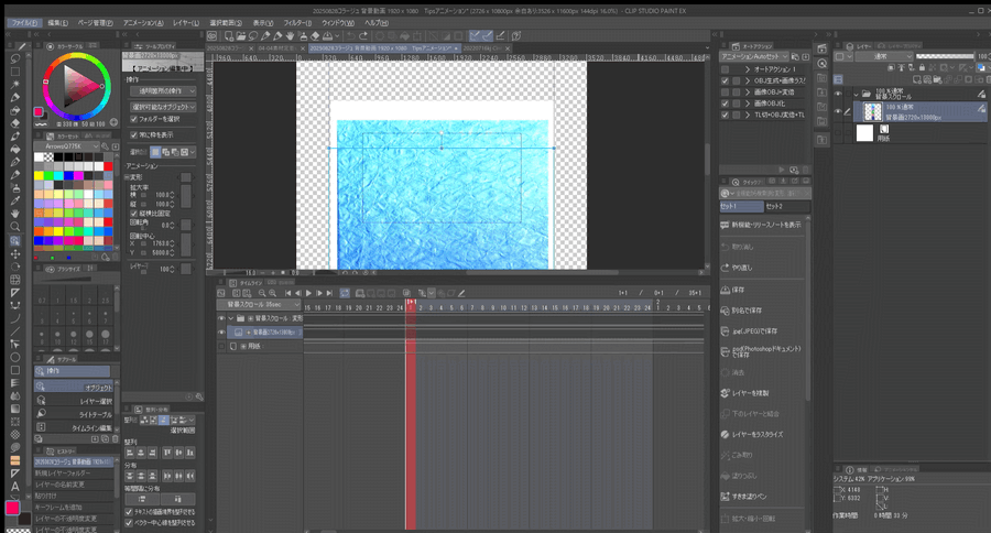 Mit der in „【Erstellen 01】Dokumentdatei erstellen“ erstellten Animationsdatei wurden Bilder importiert und ein Hintergrundbild erstellt.
