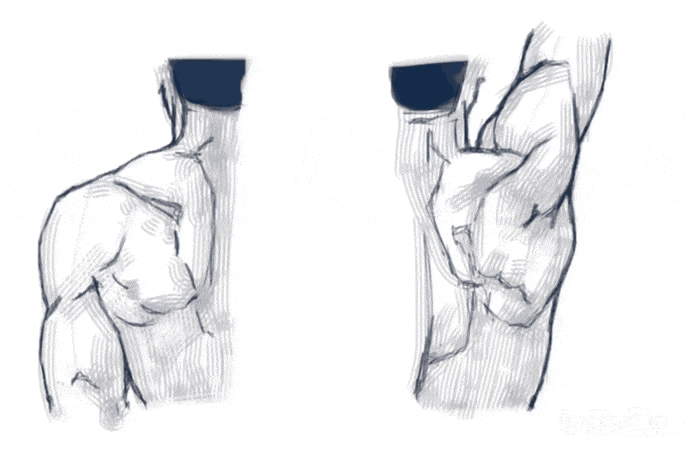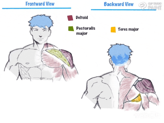 Beim Zeichnen der Schulter ist die umliegende Muskulatur zu berücksichtigen, insbesondere die Brust- und Teresmuskeln sowie die Deltamuskeln, da sie die Verbindung und Form der Schultern definieren.