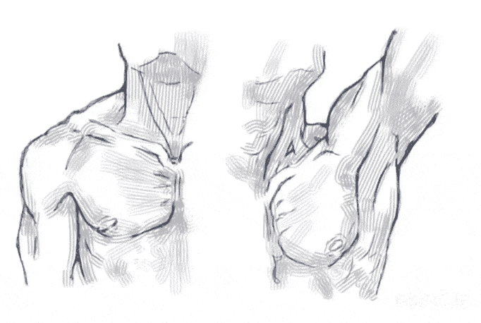 Der Fehler beim Rendern des Brust- und Schulterbereichs besteht darin, die Schlüsselbeine nicht darzustellen,