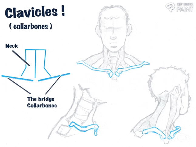 Wann immer du die Halsstruktur zeichnen möchtest, rate ich dir, zuerst die Schlüsselbeine anzulegen, da sie als Grundlage dienen, um den Hals darauf auszubalancieren.