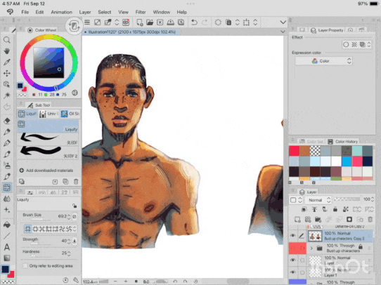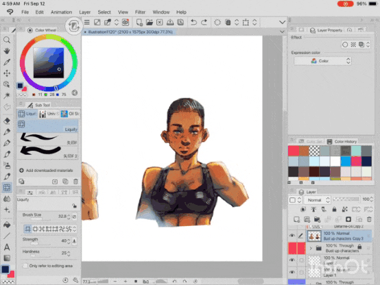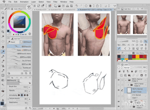 Okay, du hast deine Brustbild-Pose skizziert, aber vielleicht fühlt sich der Fluss etwas steif an, oder du möchtest den Winkel des Kopfes oder der Schultern leicht anpassen, ohne alles neu zu zeichnen? 😩 Die absolut BESTEN Tools dafür in CSP sind das 'Verflüssigen'- und 'Puppet Warp'-Werkzeug! 🐐