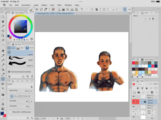 Verflüssigen ist ein Werkzeug, mit dem Benutzer Teile ihrer Zeichnung manipulieren können, ähnlich wie beim Arbeiten mit digitalem Ton. Es ist nützlich für subtile Anpassungen oder dramatische Formänderungen.