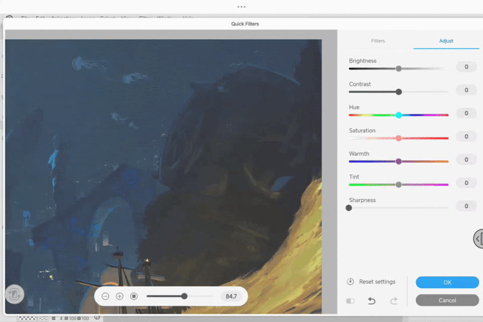 In Clip Studio Paint sind Filter eine super praktische Möglichkeit, Ihre Ideen schnell zum Leben zu erwecken, ohne komplizierte Werkzeuge zu benötigen. Mit nur wenigen Klicks können Sie weichzeichnen, schärfen, Effekte hinzufügen, Farben korrigieren und vieles mehr. Es ist, als würden Sie Ihrem Kunstwerk ein schnelles Makeover verpassen, ohne alles von Hand neu machen zu müssen.