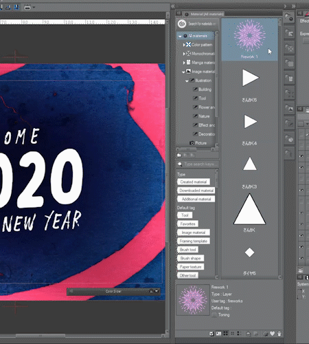 ■ Ich werde einige typische Neujahrselemente wie Konfetti und Feuerwerk und 2020 als Hauptelement verwenden.