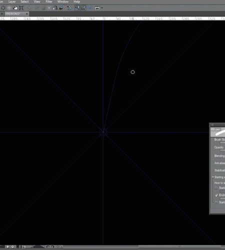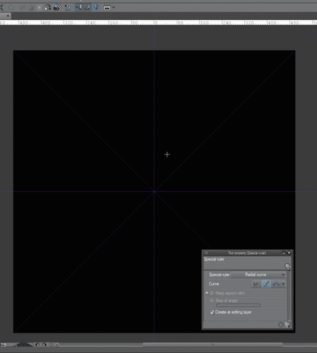 ■ [3.5] Klicken und ziehen Sie von der Mitte der Leinwand, um das Lineal zu erstellen. Wir können das Objektwerkzeug verwenden, um es später zu verschieben.