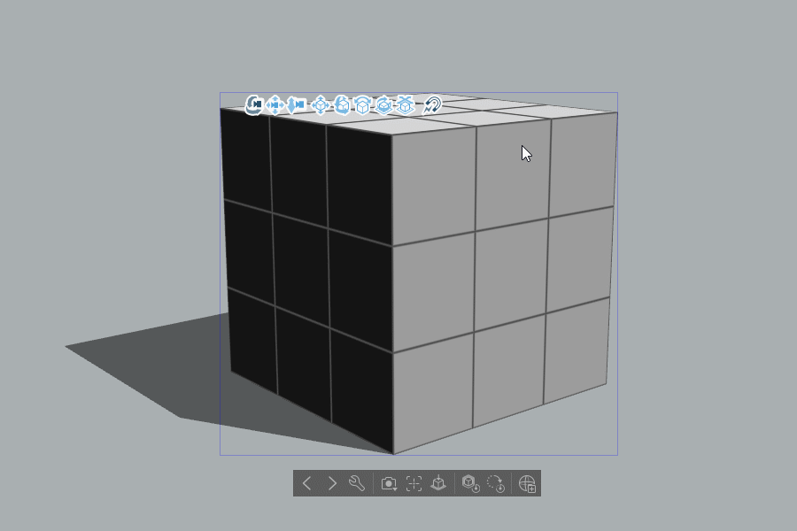Was diese drei Optionen bewirken, ist die Bewegung der Kamera um das Objekt herum. Diese Bewegung ändert nicht die Kameraperspektive, aber wenn Sie das Scrollrad drehen, ändert sich die Perspektive. Verstehen Sie also, dass das Scrollrad keine Möglichkeit ist, auf das Objekt zu zoomen, sondern die Perspektive der Kamera zu ändern. Eine wichtige Klarstellung ist, dass, wenn Sie eines der Symbole drücken, die das 3D-Objekt bewegen (Auf Ebene bewegen, Ansichtsrotation, Ebenenrotation, Im 3D-Raum drehen oder Einrasten und Bewegen), dies die linke Maustastenfunktion sperrt, um diese Bewegung auszuführen. Um die Kamera zu drehen, müssen Sie also das erste Symbol drücken, um diese Funktion zu sperren.