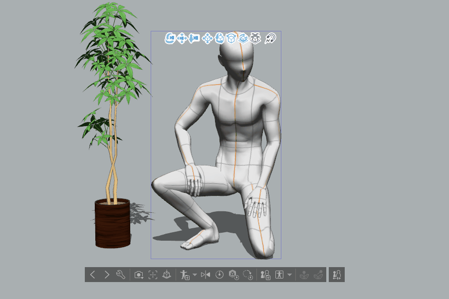 Als Nächstes (M5) folgt eine der nützlichsten Funktionen. Dieses Symbol ermöglicht es Ihnen, das Objekt zu bewegen, während es auf der Bodenebene gleitet. Ich benutze es ständig, um Charaktere und Objekte zueinander zu platzieren.