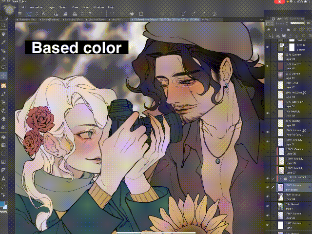 Erkennt ihr das Muster? Ich habe immer einige [Effektebenen] mit verschiedenen Ebenenmodi wie [Multiplizieren], [Überlagern] oder [Leuchten hinzufügen], etc…
