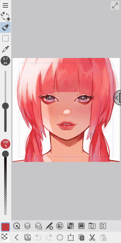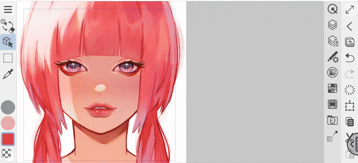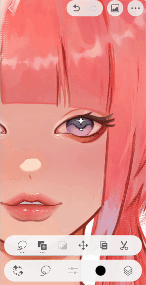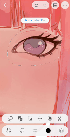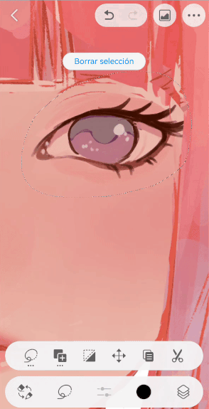 ● Eyedropper by long-pressing: If we keep a finger pressed on the part of the canvas where we want to obtain the color, the eyedropper circle will appear; we can move it around the canvas without lifting our finger from the screen.