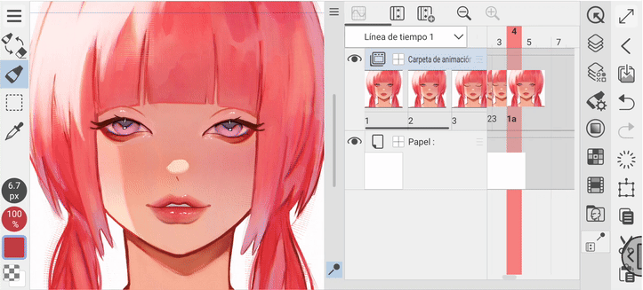 We will start by selecting the fifth animation cel in the timeline, long-pressing it until the window mentioned in the previous frame appears, and then choosing the base layer, which contains the layer we imported. Done, that's all.
