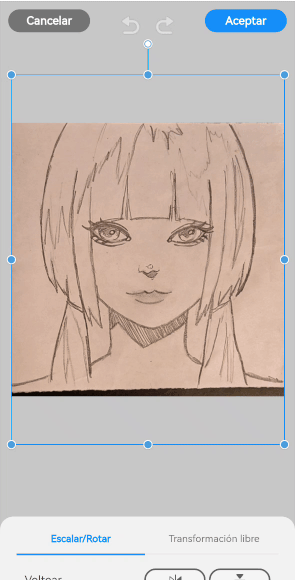 The imported image will be added as a preview with the corresponding nodes that will allow us to fit it better to the canvas. Once everything is adjusted, we will click «OK».