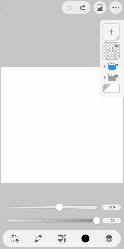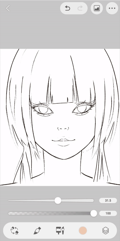 Tool Menu: Clicking the brush icon at the bottom unfolds the tool menu. Here you'll find essential tools such as: Transform, Eyedropper, Brush, Lasso, Liquify, Eraser, Fill, Figure, Filter, and Effect.