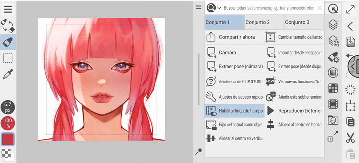 To import or create a color set, we need to click on the three lines on the left side, and then on the “+” sign. If we choose «Search for new sets», it will redirect us to the Clip Studio ASSETS page, we download the set, and done. If, on the other hand, we choose «New color set», a new set will be created where we can pour our own colors.