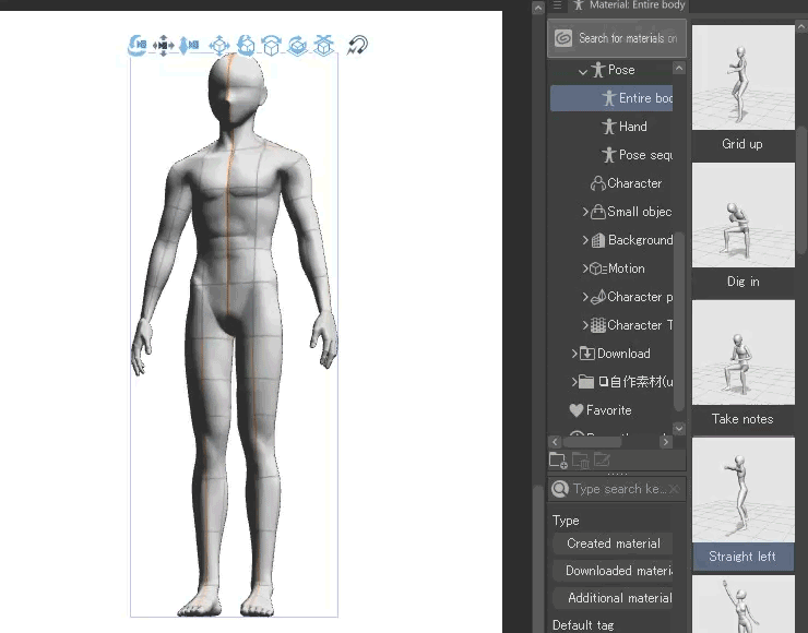 Registered materials can be displayed on the canvas in the same state at any time, saving you the trouble of recreating poses.