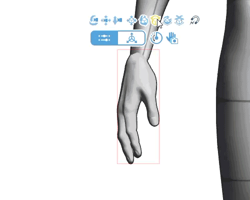 When you select the 3D hand model with the Object tool, the Movement Manipulator will appear above the model.