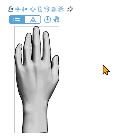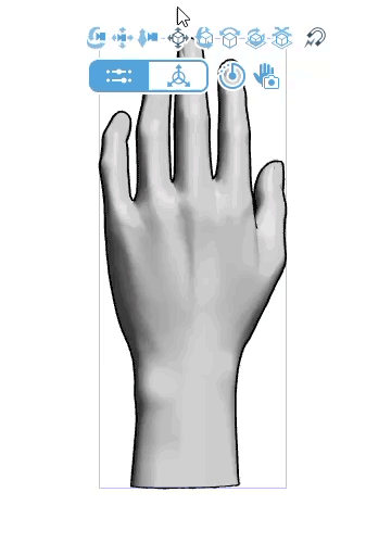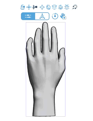 Note: Dragging to change the viewpoint does not change the direction of the light source. If you want the palm side to be brighter, change the orientation of the hand model using the Movement Manipulatort, or adjust the light source direction.
