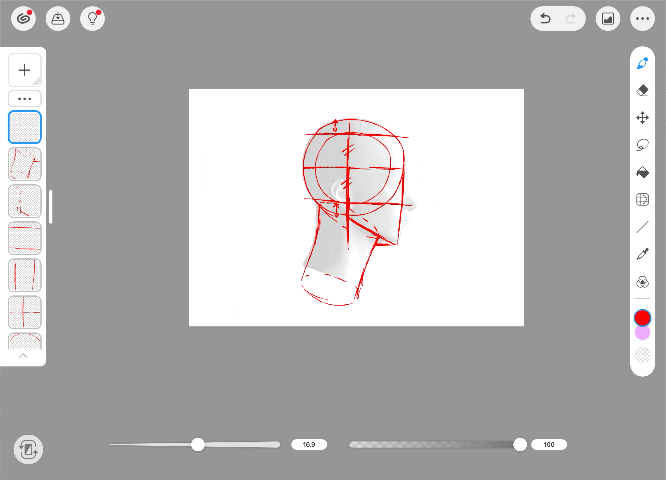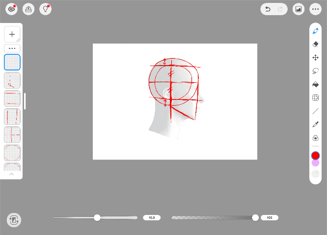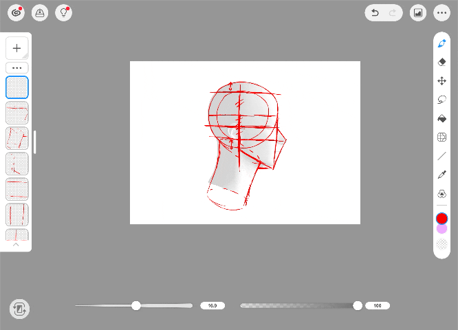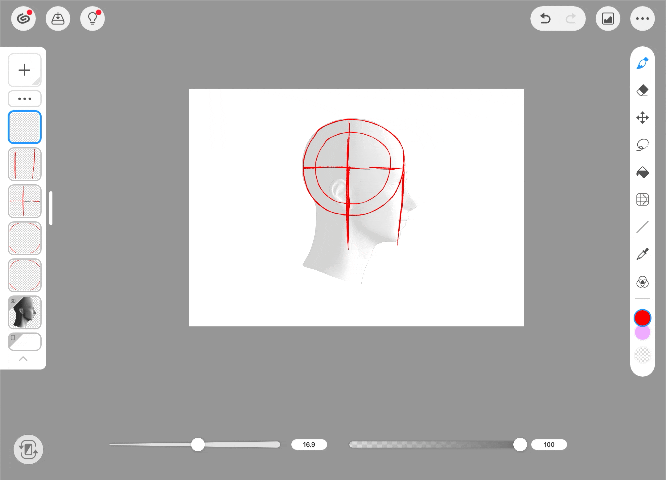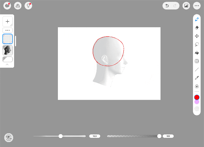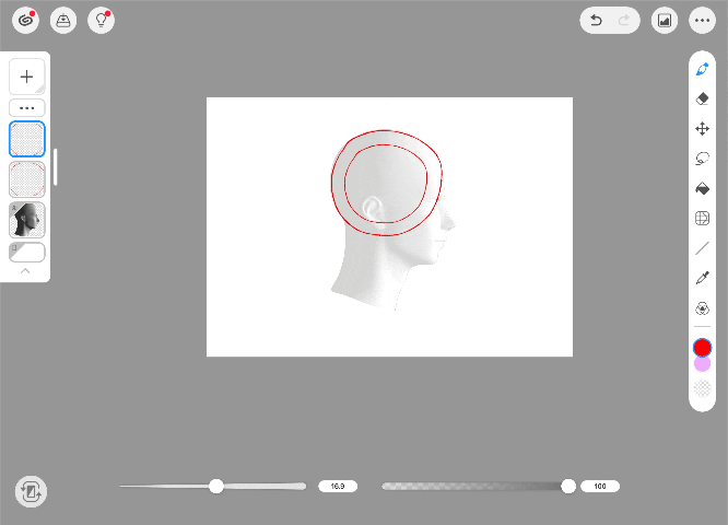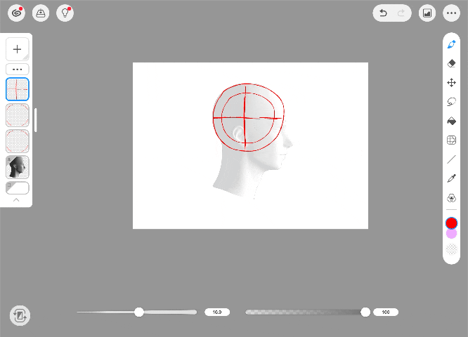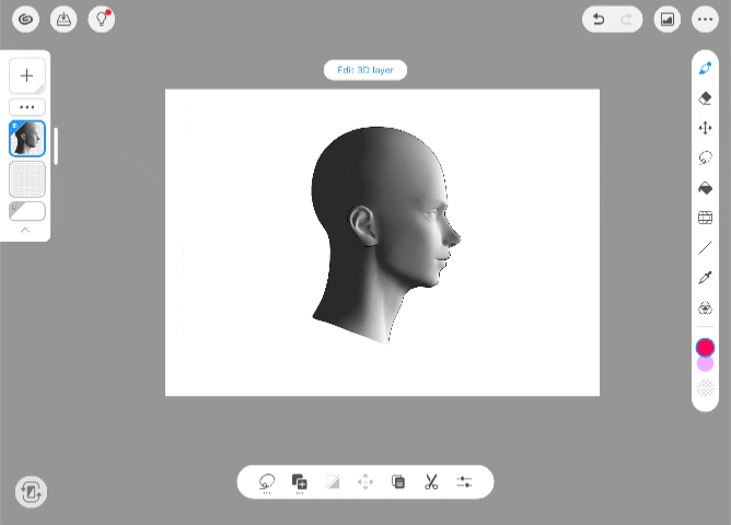 Thankfully clip studio paint comes with a variety of 3D head models! First import it to your workspace by tapping the model of your choice and it will directly be on your canvas.