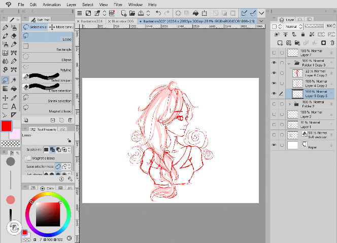 To select each part separately, I use the selection tool, when working in Simple mode, I just import the selection tool to my brushes and use it (It’s not available in simple mode by default)