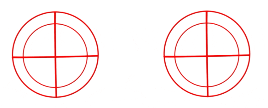 Now draw straight horizontal and add vertical lines, at the very centre of the circles.