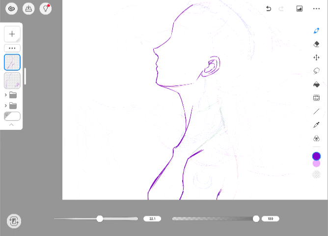 At some point when am done with most of the rendering, I lower the lineart’s opacity and add darker edges to the coloring layers, then slightly blend them.