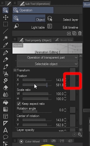 • Click the Transformation that you want and add the value using the Transformation Panel at your [Operation] Tool -- [Object] Sub Tool