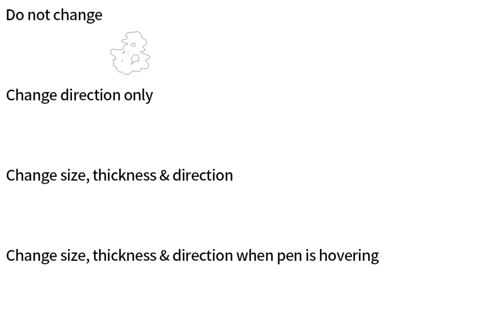 - Change size, thickness & orientation when pen is hovering