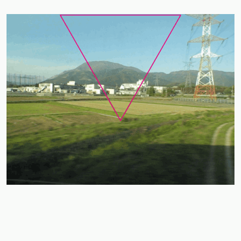 First, draw the area that will be displayed as a kaleidoscope.Draw a red triangle on a vector layer (line color is arbitrary).Draw a triangle connecting the points 'center', '120px left and 210px up from center', and '120px right and 210px up from center'.It looks like an equilateral triangle, but it's a very similar isosceles triangle.Since it only plays for 8 seconds, I'll look for a visually appealing start.I shifted the movie so it starts from where a steel tower crosses.Change the movie size so that the steel tower crossing the triangle fits nicely.I set the 'Magnification' to (71).Click the 'Enable keyframes on layer' icon in the 'Timeline' palette.Since the 'Keyframe interval' is not repeated, I don't care if it's 'Constant speed' or 'Smooth'.Add a 'Keyframe'.The 'Magnification' in the 'Tool Property' palette was automatically changed.Is this a bug?Display the last playback frame.I set the 'Magnification' to (80) and moved the movie position so the tree is in the center.The discrepancy in the 'Magnification' value can be corrected, but I won't; I'll proceed as is.Of course, you can correct it if you like.