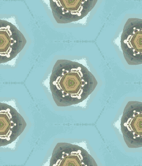 Here are the (480 × 480) image without dithering and without color reduction,the finished kaleidoscope's actual size illustration-style color-reduced version (PNG image), andthe full-color (PNG image), placed side by side.