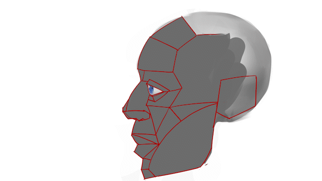 So we will primarily focus on the planes of the face around the eyes, as we can see the eyes usually concave in as the brow juts out, casting a shadow on our eye sockets.