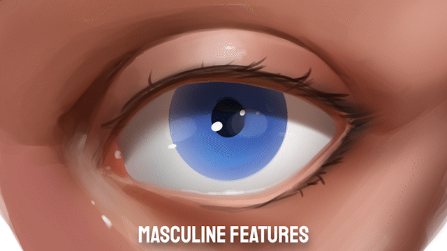 The first step of creating eyes is choosing what type of character we have, where it looks, and whether it's masculine or feminine in features.