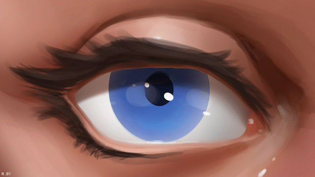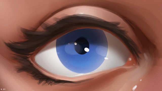 And since, like everything, the Sclera is a three-dimensional object, it has a shadow cast on it from both the top and bottom eyelids depending on the light in the scene. and keep in mind it has spherical shading as it is not a flat plane facing forward.