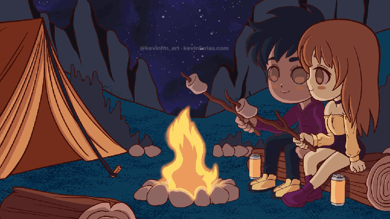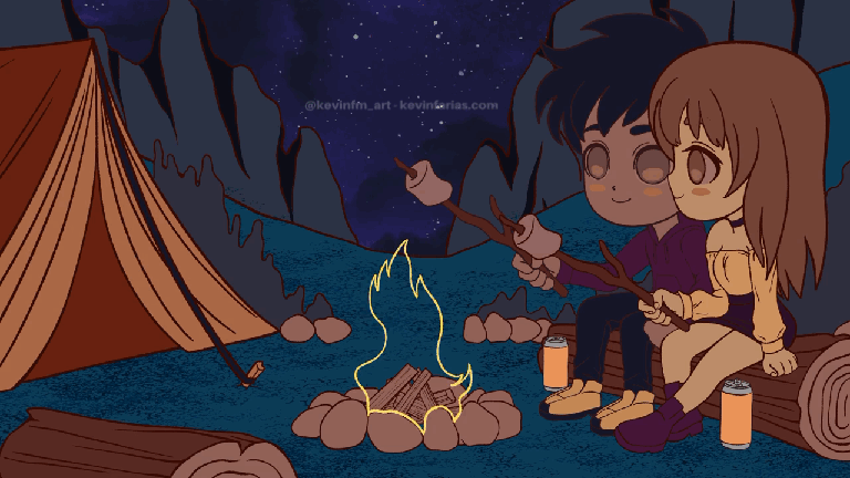 This animation only has the characters' eyes animated, so now it needs us to animate the campfire, and that's where we come in, animating the flames.