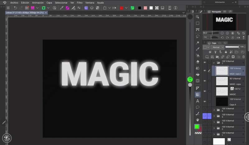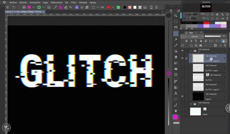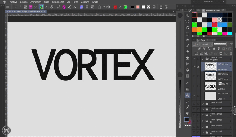 ¡Hola a todos! Gracias por estar aquí una vez más ʕ•́ᴥ•̀ʔっ. En esta ocasión les comparto el proceso que sigo para crear diferentes efectos en las tipografías usando algunos filtros. Bueno, sin más preámbulos…