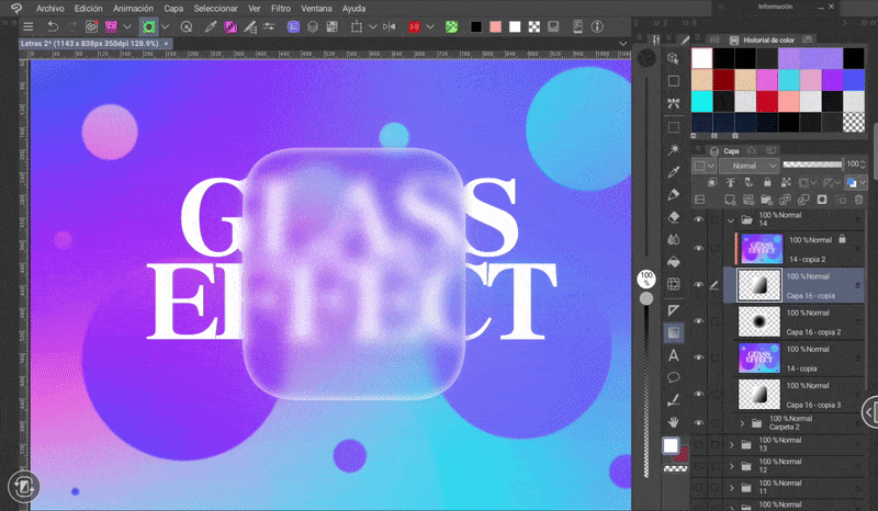Ahora veamos como otorgarle profundidad al efecto de cristal: