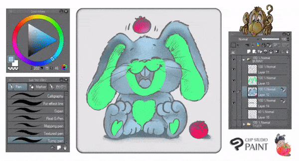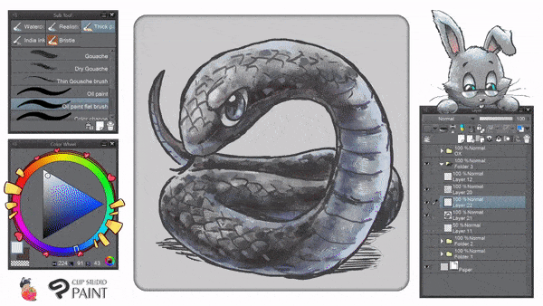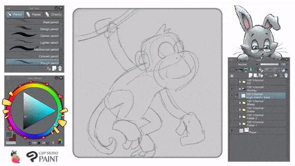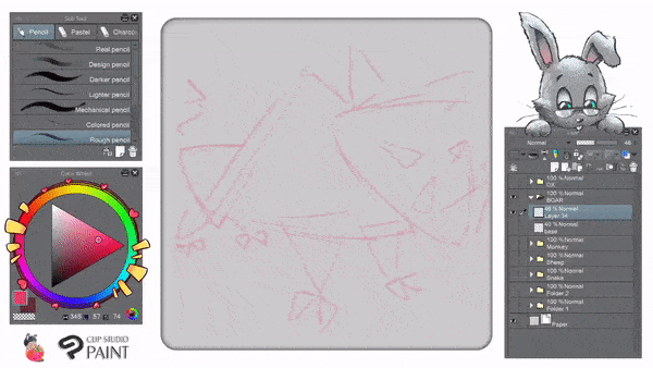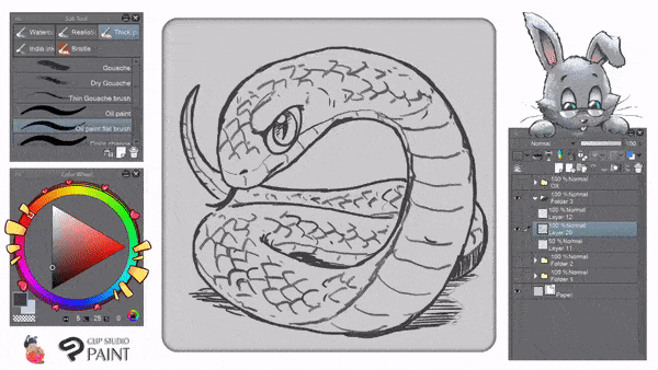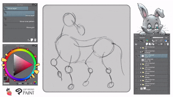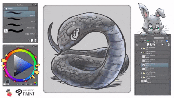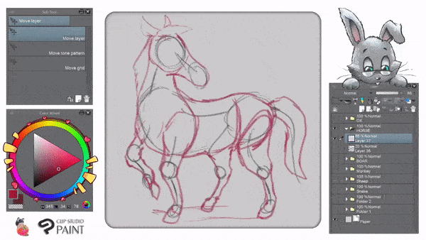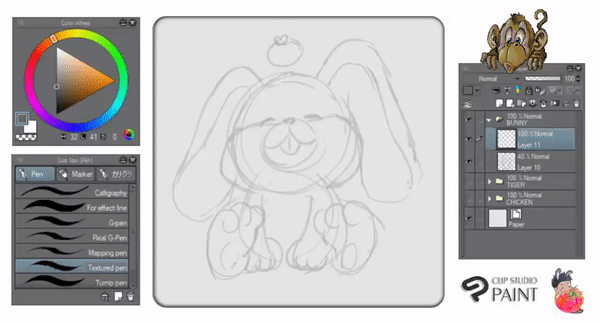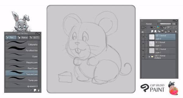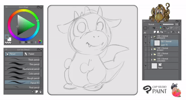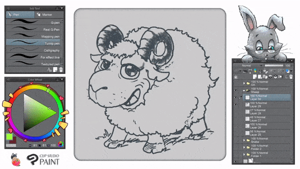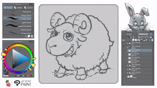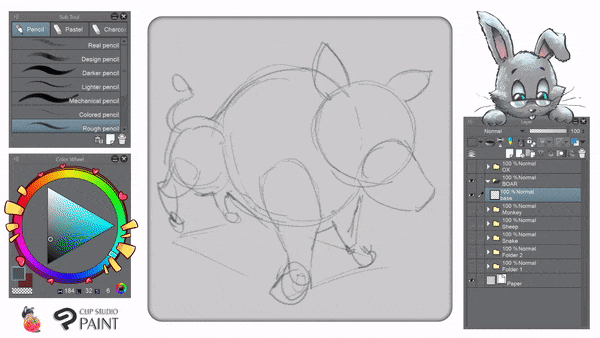 En este tutorial aprenderás los conceptos básicos para dibujar adorables animales en Clip Studio Paint, desde estudios de bocetos hasta la simplificación de la anatomía y la exageración de características para crear 12 encantadores animales del zodíaco japonés. También aprenderás a colorear, posar e incluso renderizar algunos de los animales elegidos con sus características únicas.