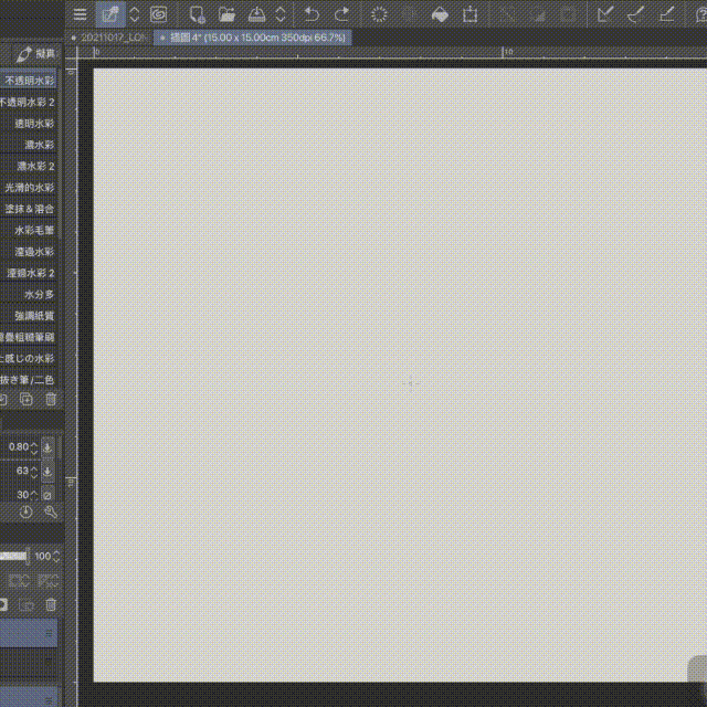 La acuarela, o más bien la acuarela transparente, su transparencia y menor saturación permiten una gran variedad de efectos.En la actualización de la Ver.1.10.10, la sección de "Acuarela realista" se ha actualizado con una gran cantidad de pinceles que simulan la acuarela transparente. Los resultados de dibujo son muy transparentes y hermosos.