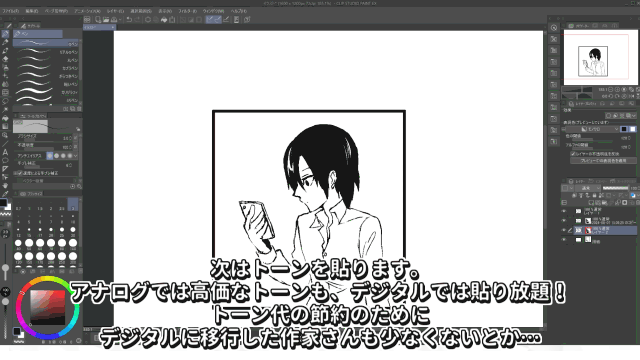 Empecemos con la conclusión.El secreto de la transición digital es...¡No tienes que ser completamente digital de inmediato!¡De hecho, no tienes que ser completamente digital para siempre!Permítanme explicarlo en detalle.Yo también dibujaba manga de forma analógica en el pasado.Empecé a dibujar manga con Comic Studio en 2011,pero al principio hacía el entintado de forma analógica, y luego realizaba el acabado digitalmente, como los negros, las tramas y la inserción de diálogos.Me resultaba más intuitivo y fácil.Continué con ese método durante un tiempo, y luego me volví completamente digital después de comprar una tableta con pantalla LCD.Sin embargo, incluso hoy en día, a veces sigo el proceso de:Boceto analógico → Importar con Dropbox → Entintar digitalmente.A veces hay partes del trabajo que hago de forma analógica, según el estado de ánimo.En la industria del manga, durante la pandemia de COVID-19 en 2020,el número de casos de transición al digital aumentó rápidamente, incluso en estudios que siempre habían trabajado de forma analógica, para poder trabajar desde casa.Parece que muchos tuvieron dificultades con esta transición digital,y es que cambiar de entorno de repente resulta complicado.Incluso para los artistas a los que les gusta el trabajo analógico,tener un entorno digital como 'opción' puede ser un seguro para cuando lo necesiten.Algunos artistas que adoran el lápiz analógicobocetan digitalmente → lo imprimen y entintan de forma analógica → lo escanean y lo finalizan.Eiichiro Oda, el autor de ONE PIECE, dibuja de forma analógica,pero al ver los vídeos del proceso de las ilustraciones de portada, se puede ver que el boceto inicial es digital.Muchos artistas analógicos utilizan el digital.Cada persona y cada artista utiliza lo que mejor se adapta a sus necesidades.Tanto lo analógico como lo digital son, en última instancia, herramientas, materiales de dibujo.No tienes que aferrarte a los métodos existentes.Debes dibujar de la forma que más te guste.