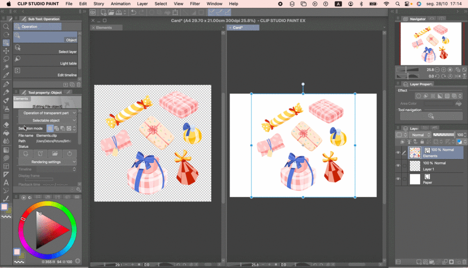 Un objet fichier dans Clip Studio est un fichier qui peut être ouvert et mis à jour en temps réel à l'intérieur d'autres fichiers. Ainsi, toutes les modifications que vous apportez au fichier Éléments seront reflétées, chaque fois que vous l'enregistrerez, sur le fichier Carte.