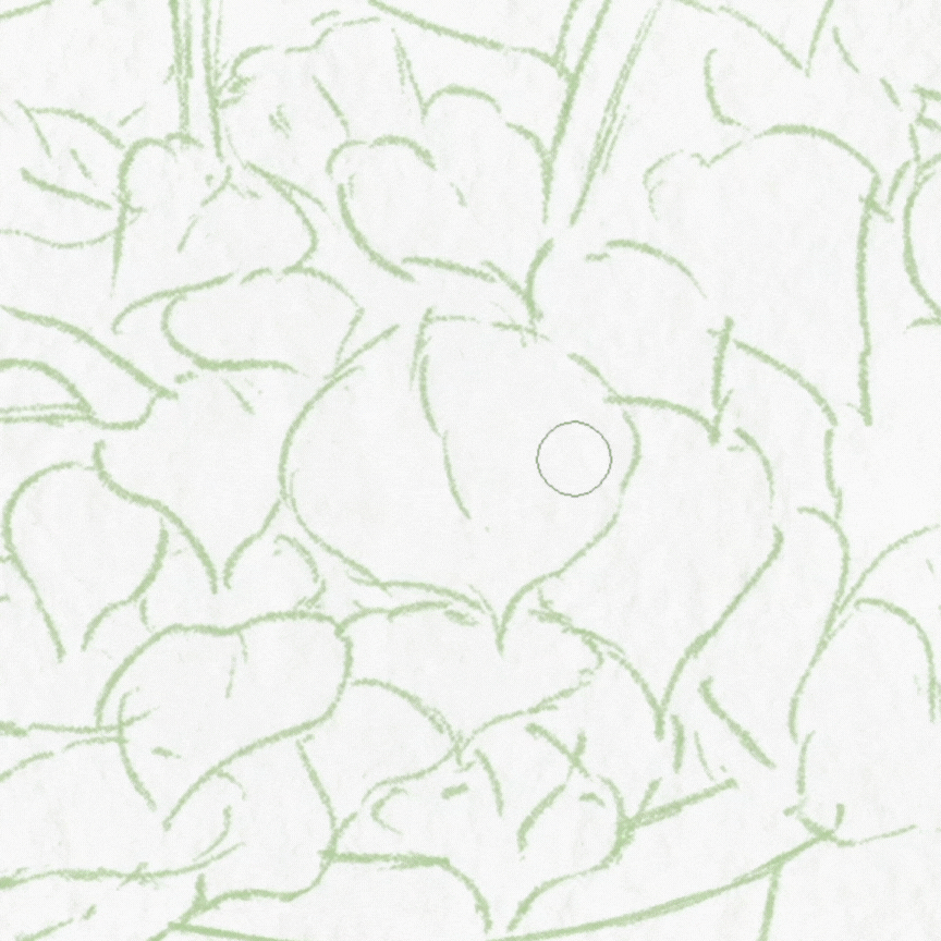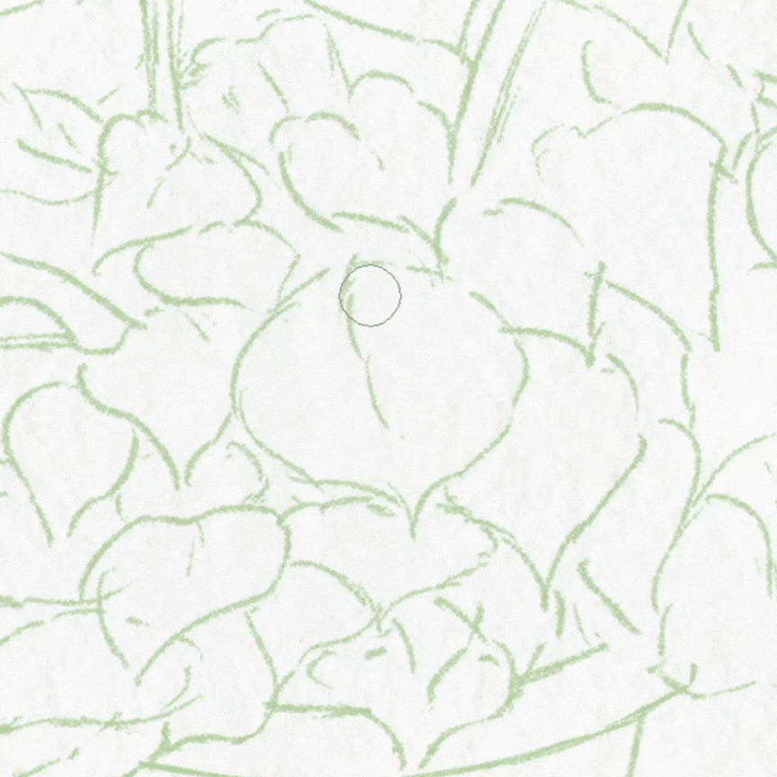 J'ai d'abord commencé par affiner les bords de mes feuilles, tout en mélangeant les lignes de croquis avec la couleur de base.