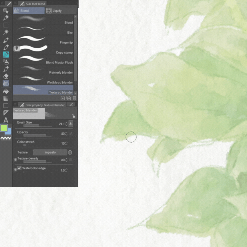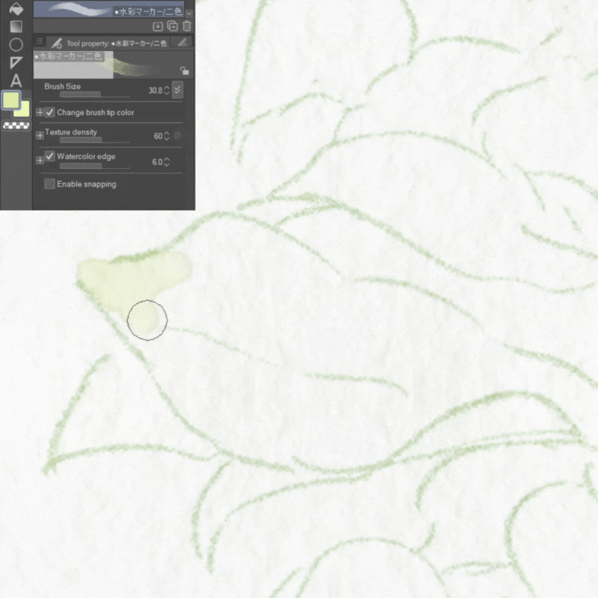 Car une fois que vous levez votre stylet puis peignez à nouveau, cela créera un bord aquarelle, donc utilisez-le uniquement là où vous voulez que le bord aquarelle apparaisse.