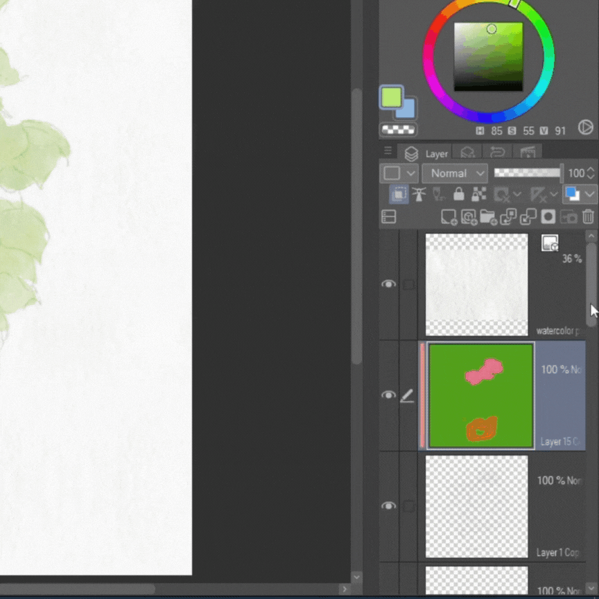 Il existe une grande variété de textures de toile dans la bibliothèque de Clip Studio Paint que vous pouvez choisir comme base aquarelle.