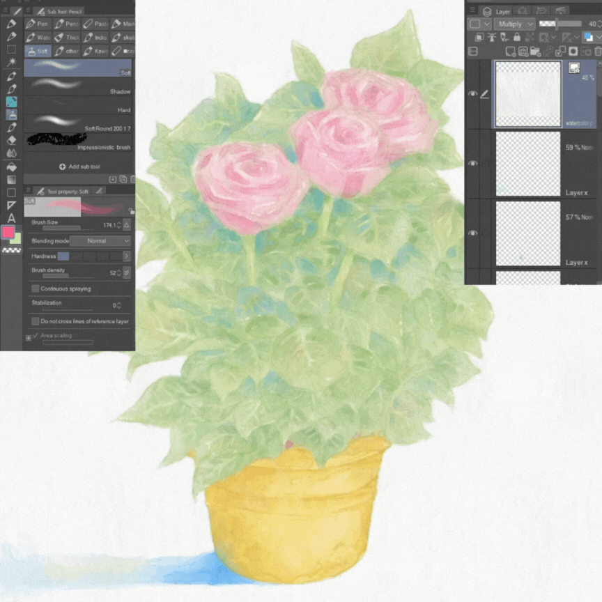 J'expliquerai le fonctionnement des pinceaux et comment obtenir l'aspect traditionnel de l'aquarelle du début à la fin sur cette illustration.
