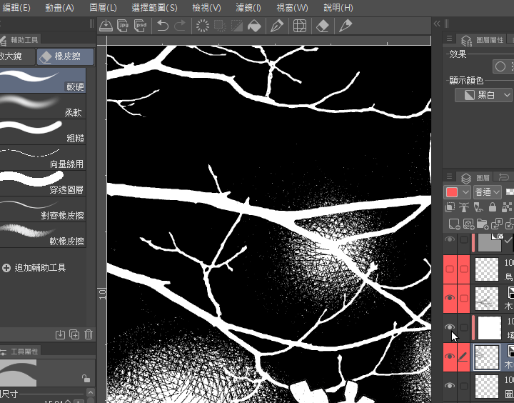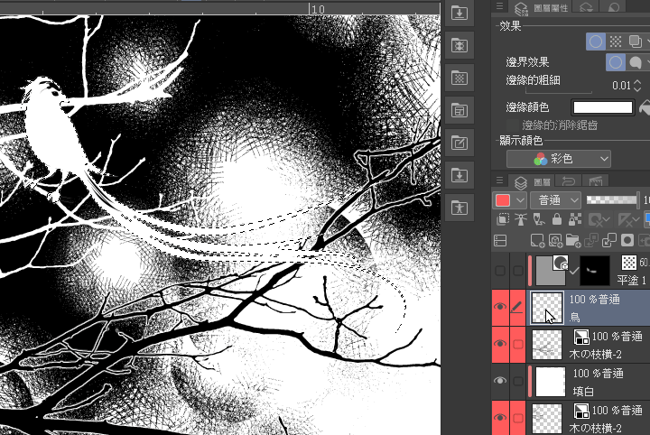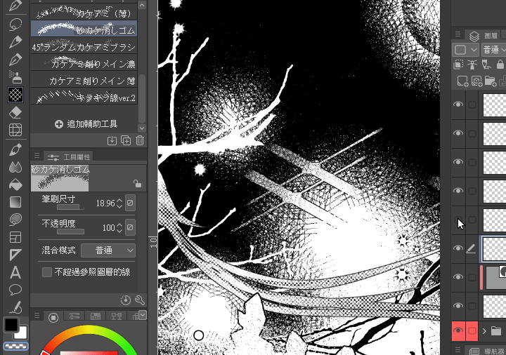 En passant du dessin purement manuel au dessin numérique,les techniques de dessin destructives que l'on souhaitait le plus essayer à l'étape manuelle,grâce aux caractéristiques de CLIP STUDIO PAINT,peuvent être expérimentées et réalisées en continu.