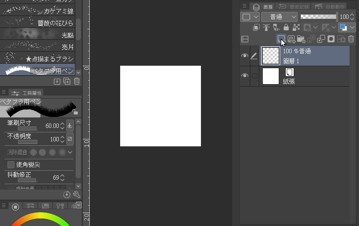 Lorsque vous utilisez un pinceau en mode normal,veuillez choisir le blanc comme couleur de dessin du pinceau,et au-dessus du calque de fond,créez un nouveau calque pour dessiner,un calque par type de pinceau,afin de faciliter les ajustements ultérieurs des effets.Une fois les ajustements terminés, fusionnez les calquesou organisez-les dans le même dossier.