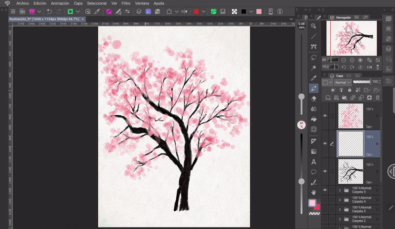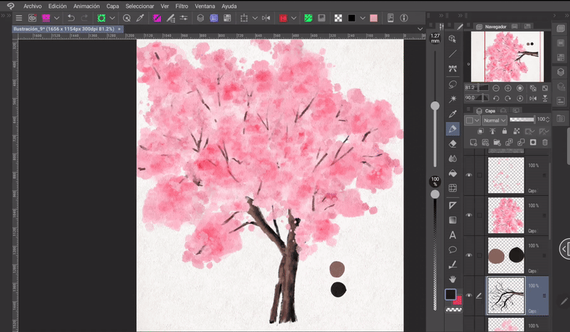 Pour peindre un cerisier avec des taches, c'est un processus simple et rapide, voyons comment :