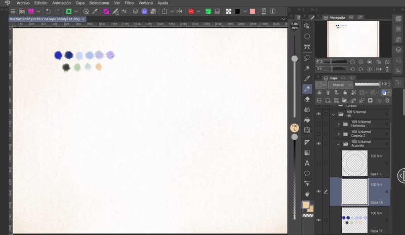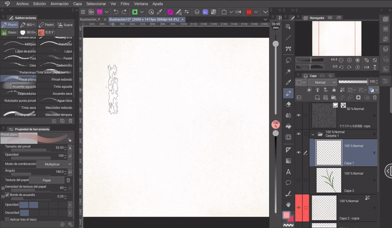 ➁ Une fois là, nous ferons glisser la texture incluse avec les pinceaux vers la toile.