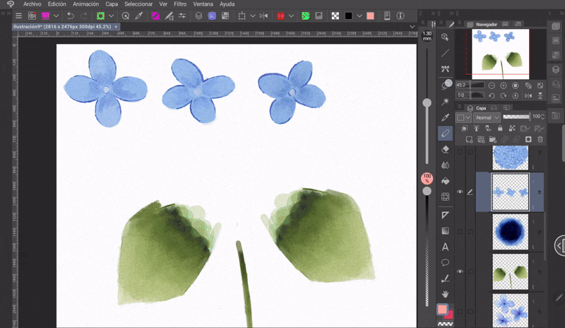 Maintenant, je vais vous montrer comment utiliser nos images de fleurs pour créer un pinceau, de cette façon, il sera plus facile de les utiliser dans d'autres illustrations.