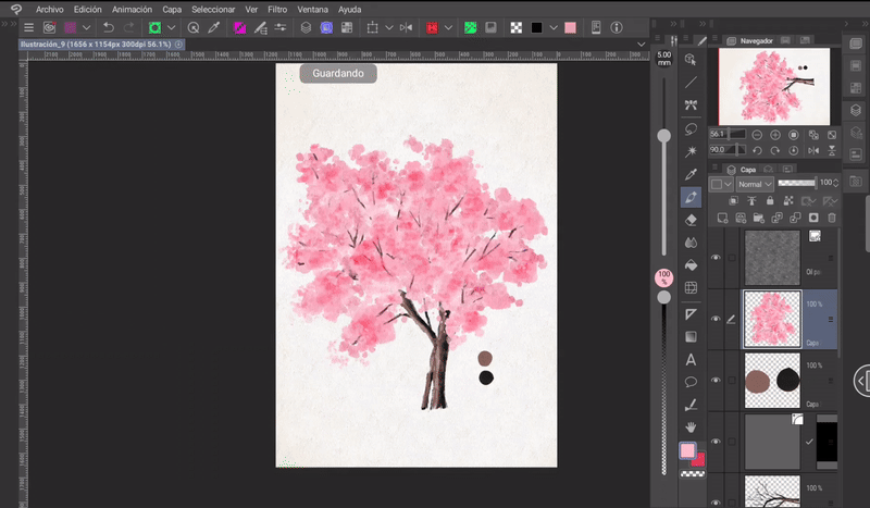 Gomme : L'une des meilleures façons d'effacer est d'utiliser la transparence. Dans la section où se trouvent les cases de couleur principale et secondaire, nous trouvons également la transparence. En la sélectionnant, le pinceau que nous utilisons se comportera comme une gomme. C'est idéal pour ne pas perdre la texture.