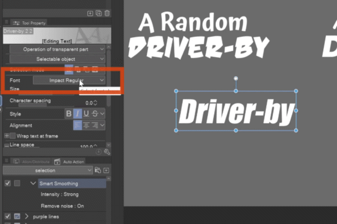 Vous devriez redessiner tout le texte de Driver-by...